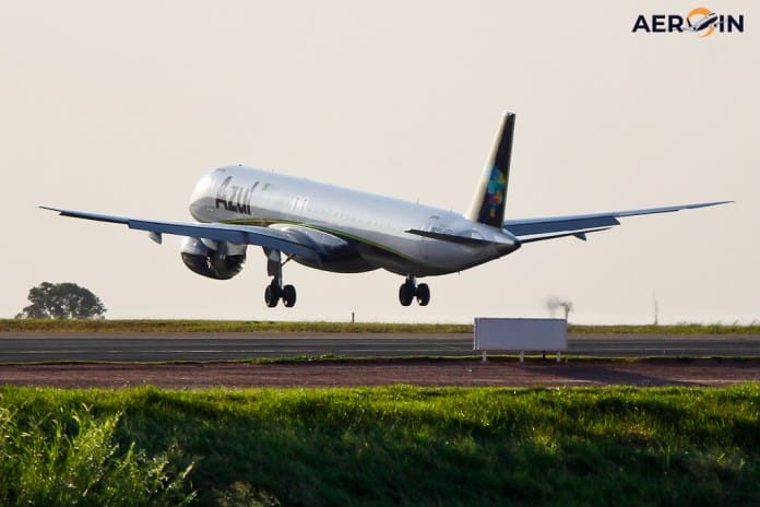 Pela primeira vez, Sinop, no Mato Grosso, recebe uma aeronave Embraer 195 E2, o maior avião comercial já fabricado no país, da Azul.