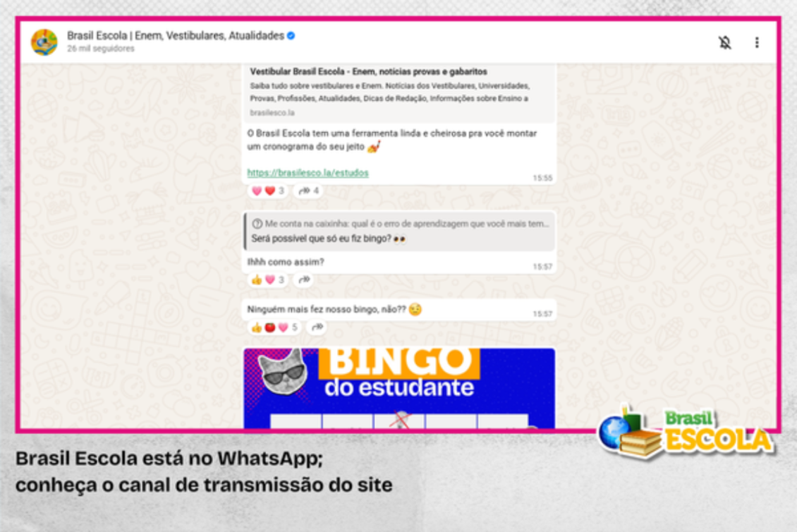 3 dias Educação Brasil Escola lança canal de transmissão no WhatsApp para maior interação com o público