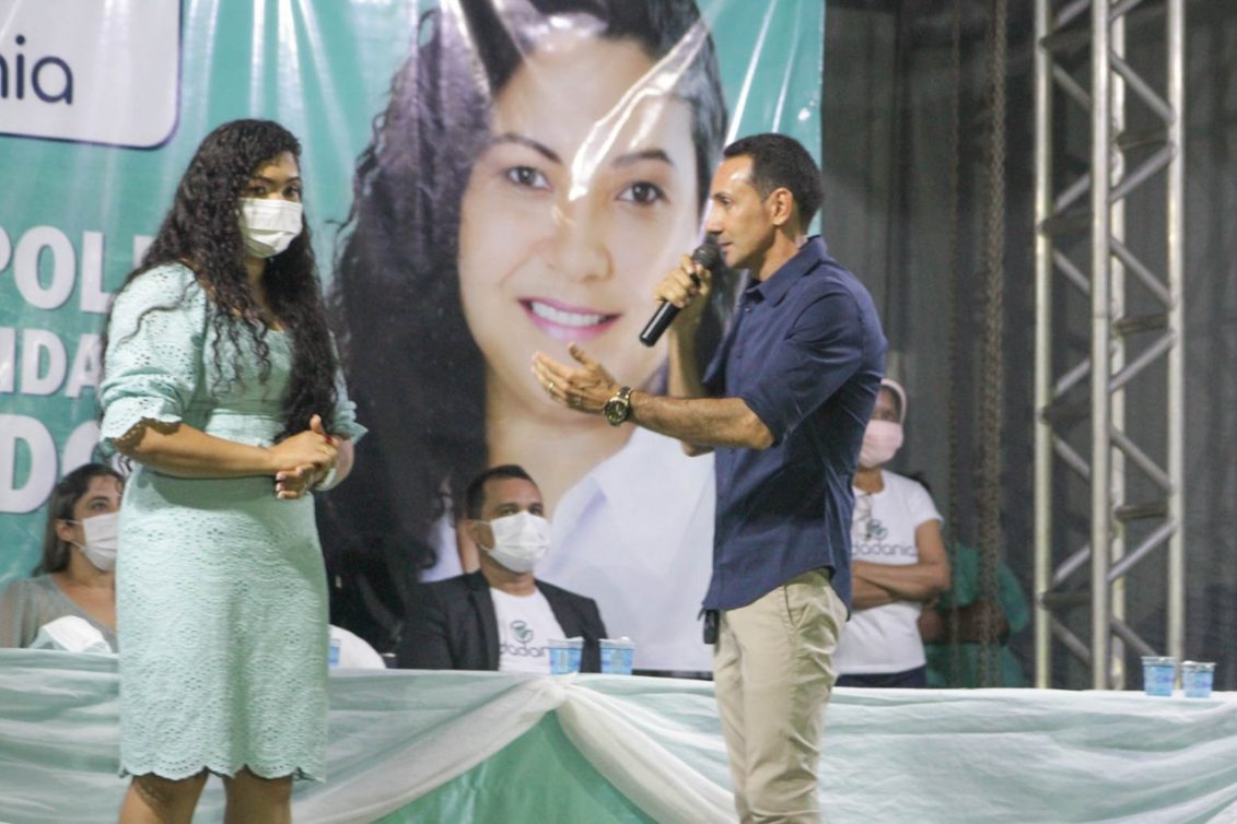 A candidata a Vice-Prefeita, Pastora Andreia, ao se pronunciar, falou que “as nossas grandes conquistas começam lá de baixo, que os sonhos se realizam e, é por isso que estamos aqui nessa noite, para mudar a realidade, para buscar a mudança, o progresso e o desenvolvimento, que tanto esperamos para essa cidade”.