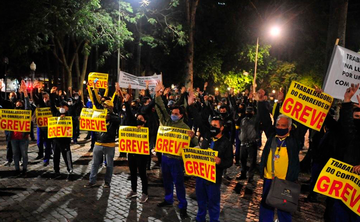 Nesta segunda-feira (17/08), cerca de 100 mil trabalhadores dos Correios em todo o Brasil deliberaram greve nacional em assembleias organizadas pelos sindicatos filiados. A partir das 22h de hoje, para locais que possuem terceiro turno, e 00h do dia 18/08, os funcionários dos Correios vão parar as atividades por tempo indeterminado contra a retirada de direitos, contra a privatização da empresa e negligência com a saúde dos trabalhadores em relação à Covid-19.